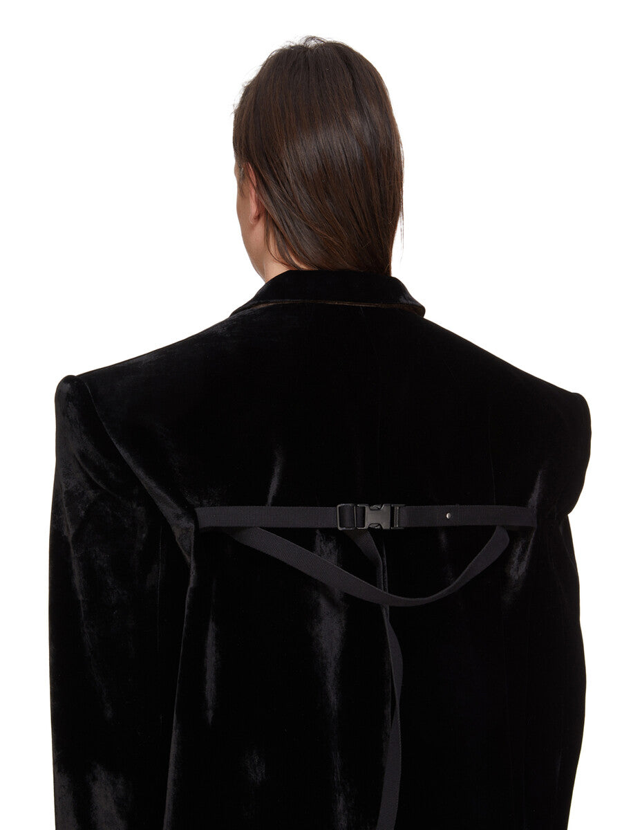 RICK OWENS FW25 CONCORDIANS FOGPOCKET RICKS COAT IN BLACK VELVET