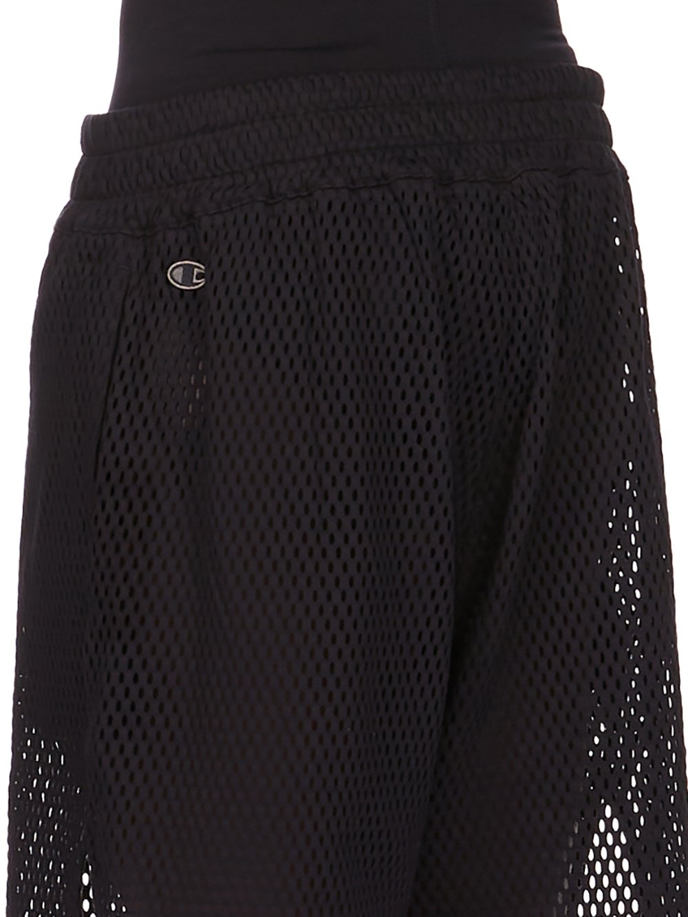 CHAMPION X RICK OWENS SS25 SHORTS IN BLACK OPEN MESH JERSEY