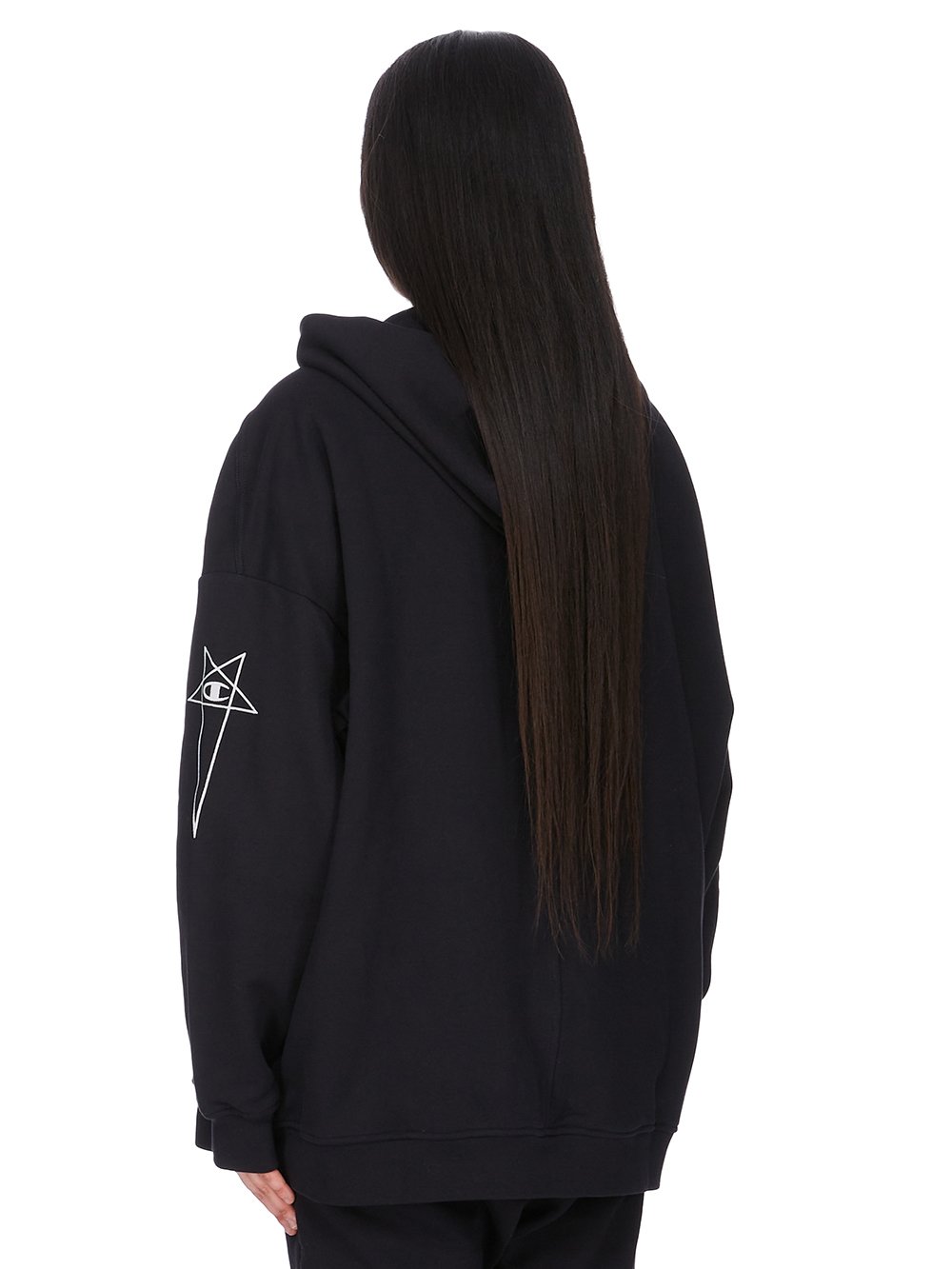 CHAMPION X RICK OWENS SS25 JUMBO JASON'S HOODIE IN BLACK COMPACT FELPA JERSEY