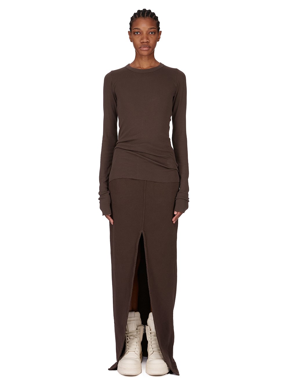 DRKSHDW FW25 CONCORDIANS PHLEG PILLAR SKIRT IN DARK DUST SLUB FELPA
