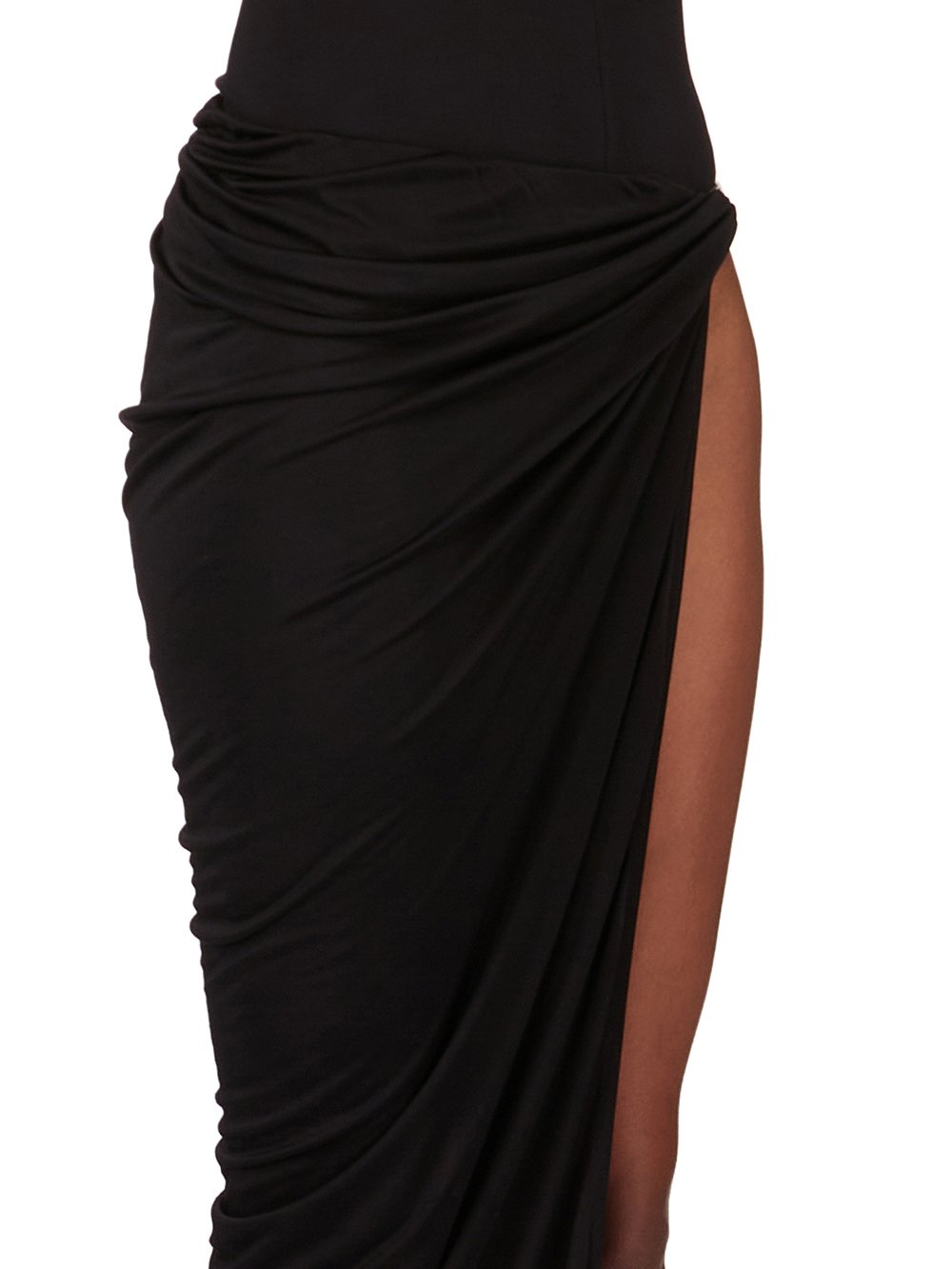 RICK OWENS FW25 CONCORDIANS  HYDRA SKIRT IN BLACK SATIN VISCOSE JERSEY.