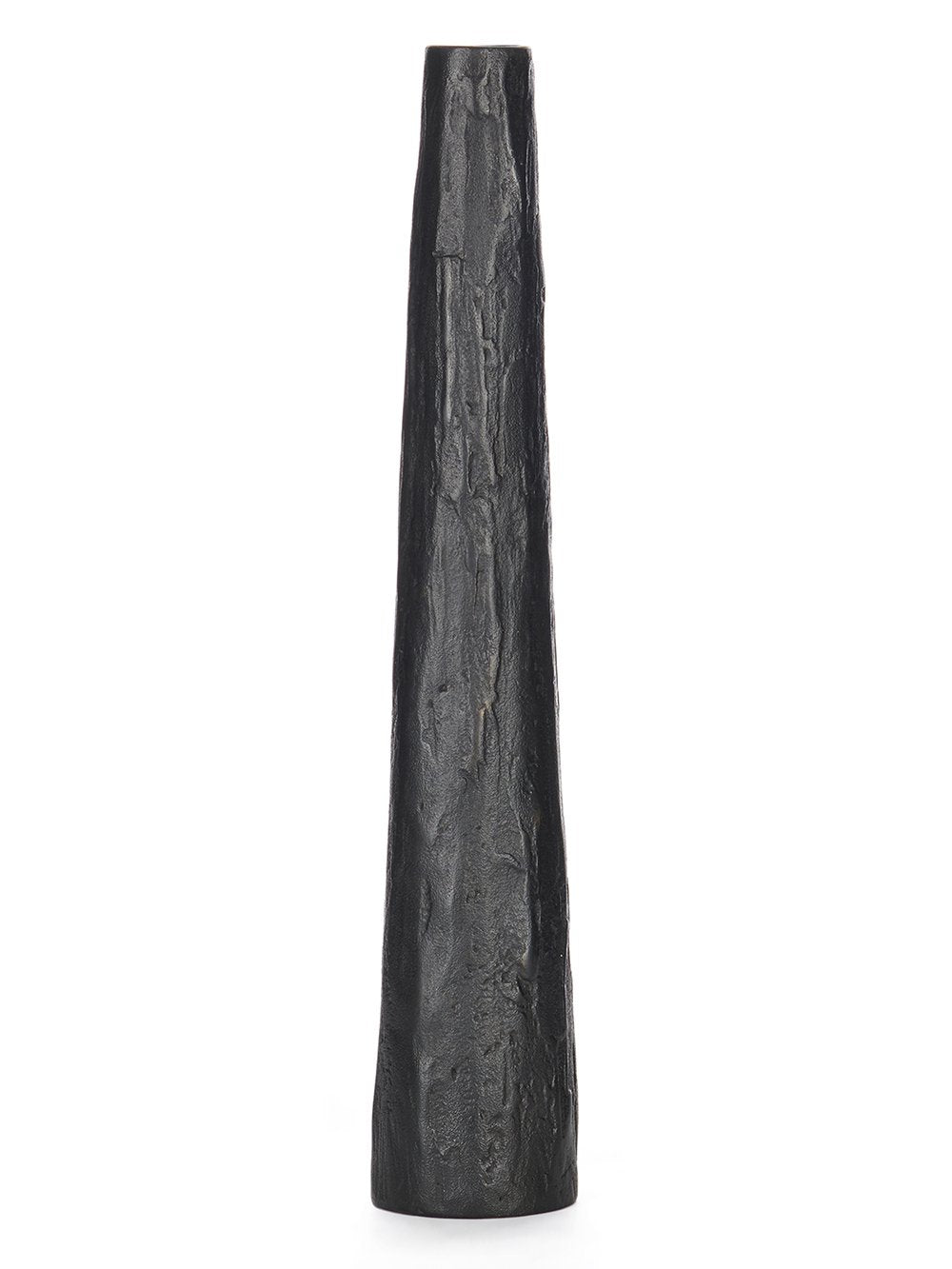 RICK OWENS GRANDE CANDLE PILLAR IN BLACK BRONZE HAS A SLIM FRUSTOCONCIAL SHAPE AND FEATURES A SLIGHTLY IRREGULAR SURFACE.