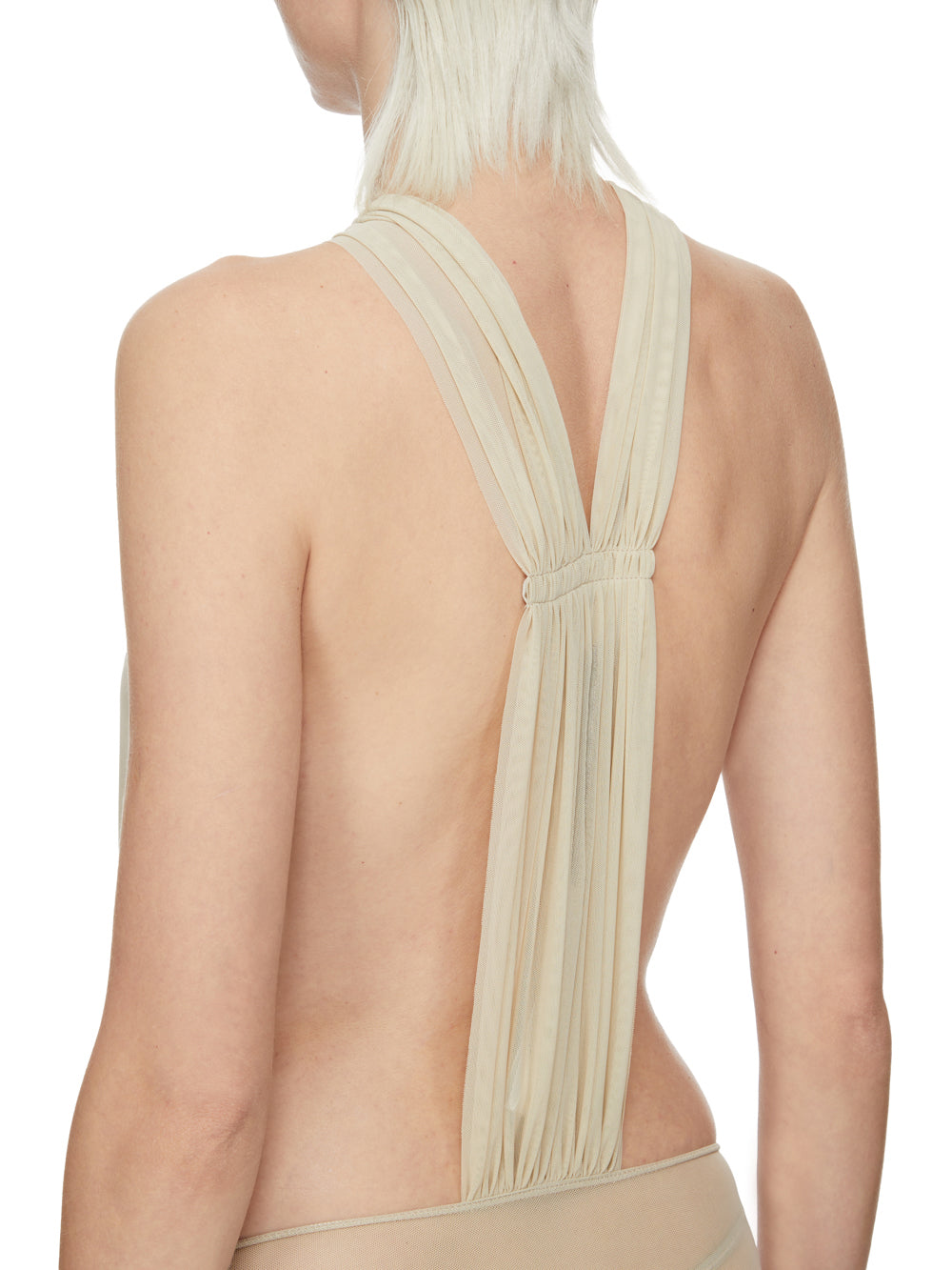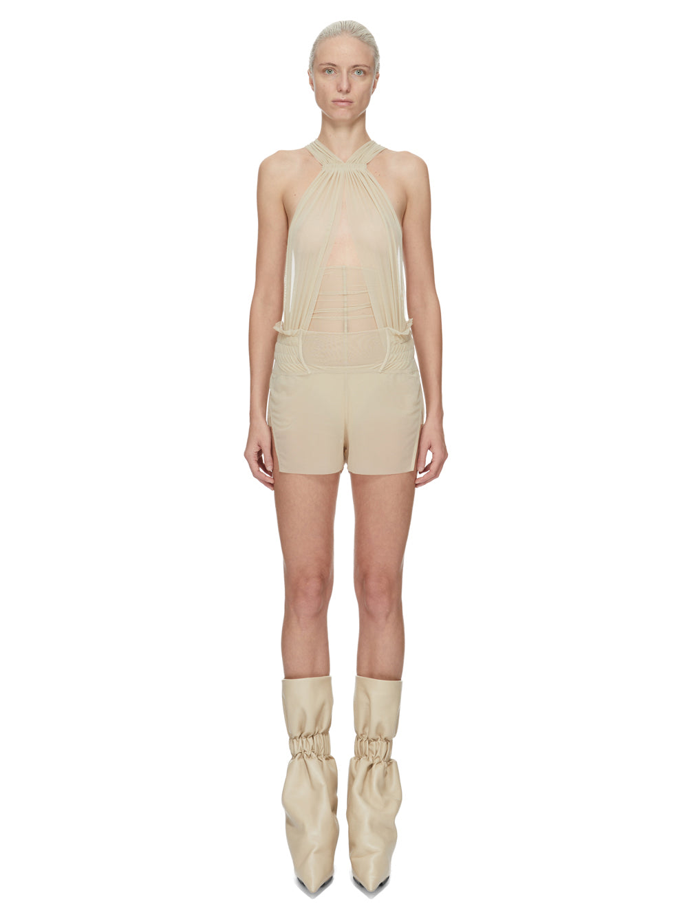 RICK OWENS SS26 TEMPLE MIAMI BODY IN SAND STRETCH TULLE