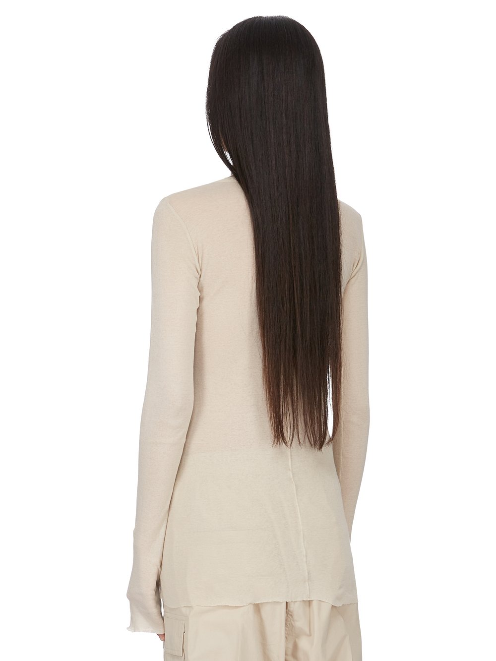 RICK OWENS SS26 TEMPLE RIB LS T  IN SAND MINI RIB JERSEY