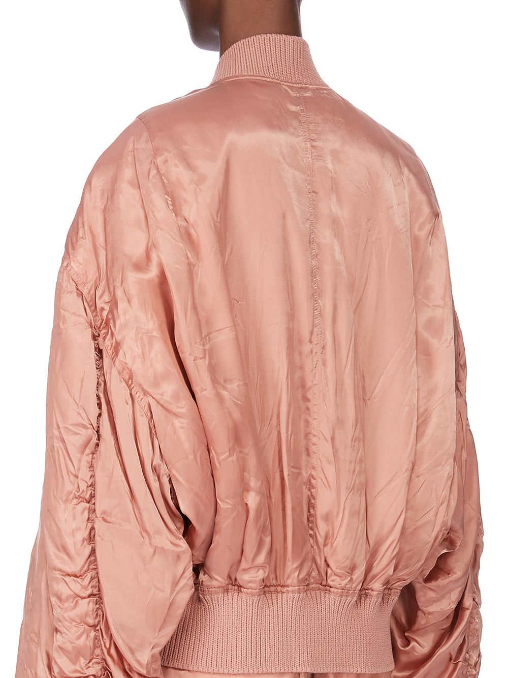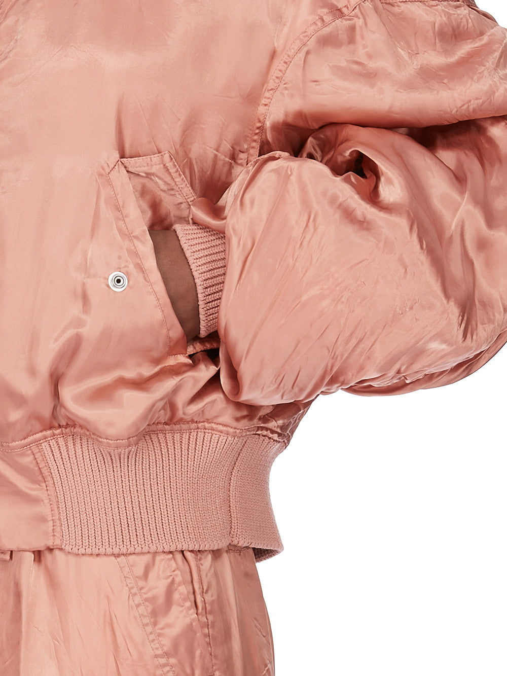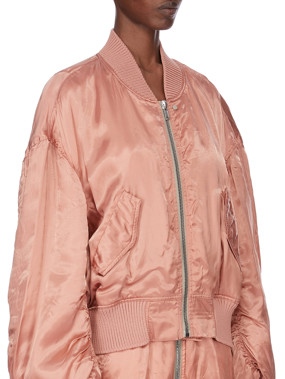 THIS SECCHIA FLIGHT IS OVERSIZED WITH LONG, GATHERED SLEEVES. IT HAS A RIBBED NECK, WRIST AND WAISTBAND FEATURES A CENTRE FRONT ZIPPER. IT HAS FRONT SIDE SNAP CLOSURE POCKETS WITH FLAPS. IT IS FULLY LINED AND HAS TWO INTERNAL ZIPPERED POCKETS.