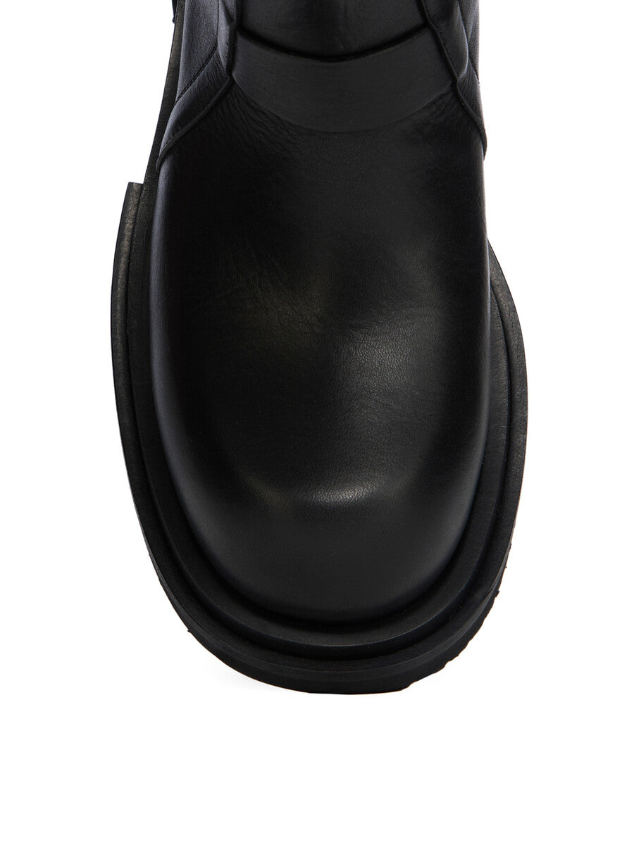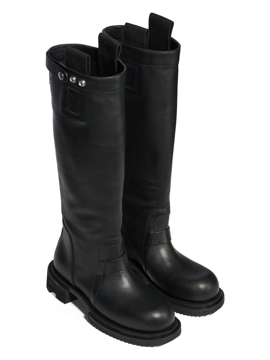 RICK OWENS SS26 TEMPLE KNEE PULL ON GABE IN BLACK WASHED CALF LEATHER