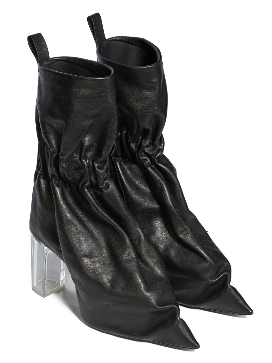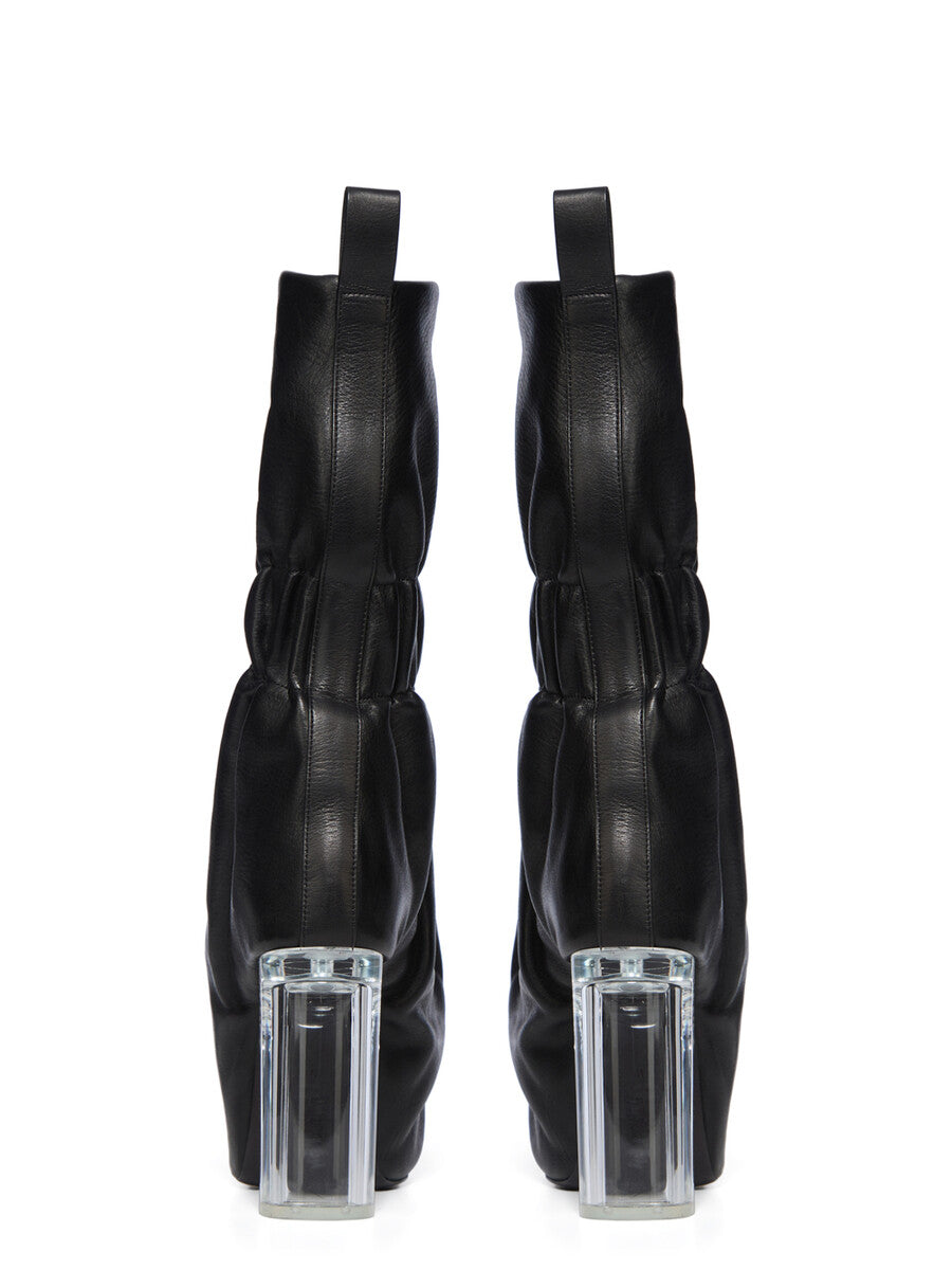 RICK OWENS SS26 TEMPLE TIED TAQUITO IN BLACK/CLEAR WASHED CALF LEATHER