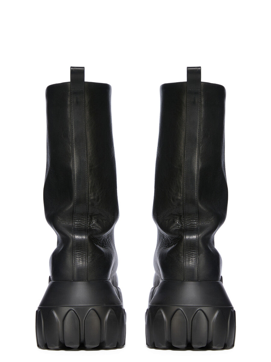 RICK OWENS SS26 TEMPLE FLARED MEGA TRACTOR IN BLACK GRAINY COW LEATHER
