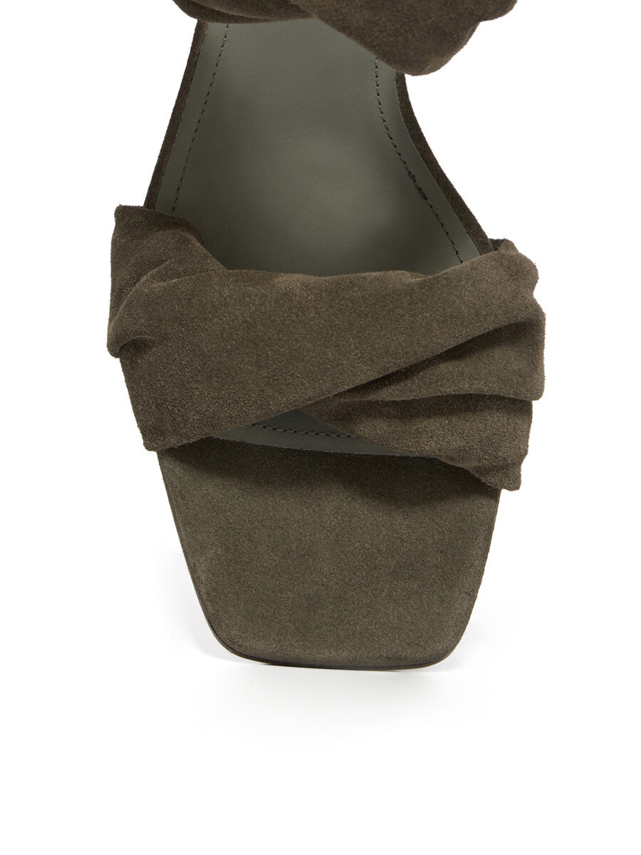 THIS TWISTED CANTILEVER 6 IS AN OPEN SANDAL WITH A THIN STRAP RUNNING OVER THE TOE. IT HAS AN ENCLOSED BACK, THAT WRAPS AROUND THE ANKLE AND ARCS OVER THE BRIDGE OF THE FOOT. RISING TO ABOVE-ANKLE HEIGHT AT BACK, IT PLUNGES WITH A SPLIT AT CENTRE FRONT. IT FEATURES A SOLE WITH A SQUARE TOE AND AN 6CM CANTILEVER HEEL.