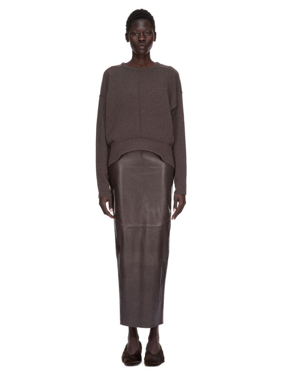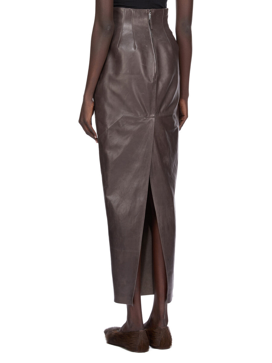 RICK OWENS FW25 CONCORDIANS DIRT PILLAR IN DARKDUST WAXY LAMB LEATHER