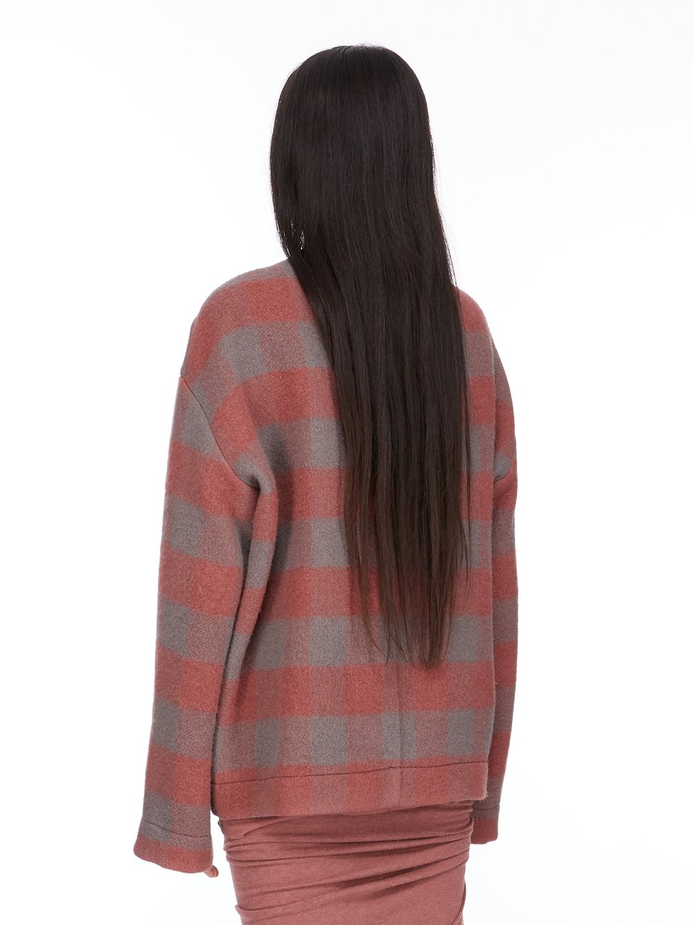 RICK OWENS FW25 CONCORDIANS ISLAND JKT IN ROSEWOOD PLAID JUMBO PLAID