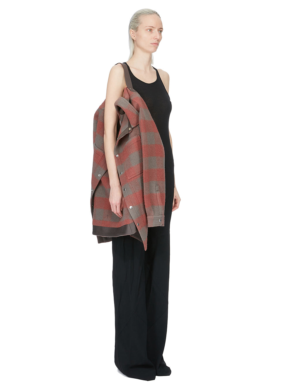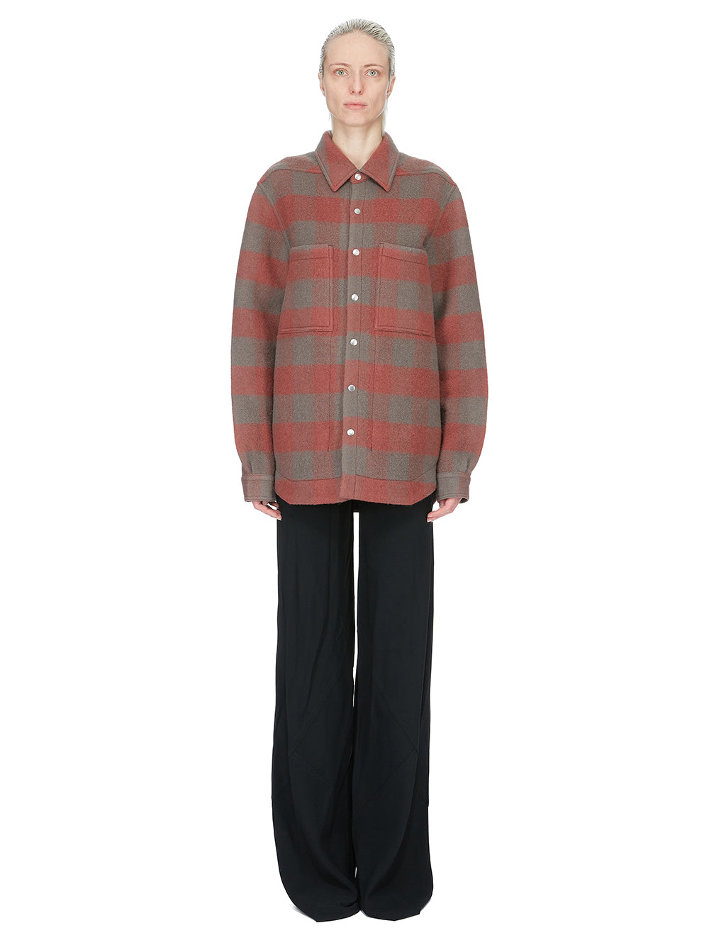 RICK OWENS FW25 CONCORDIANS OUTERSHIRT IN ROSEWOOD PLAID JUMBO PLAID