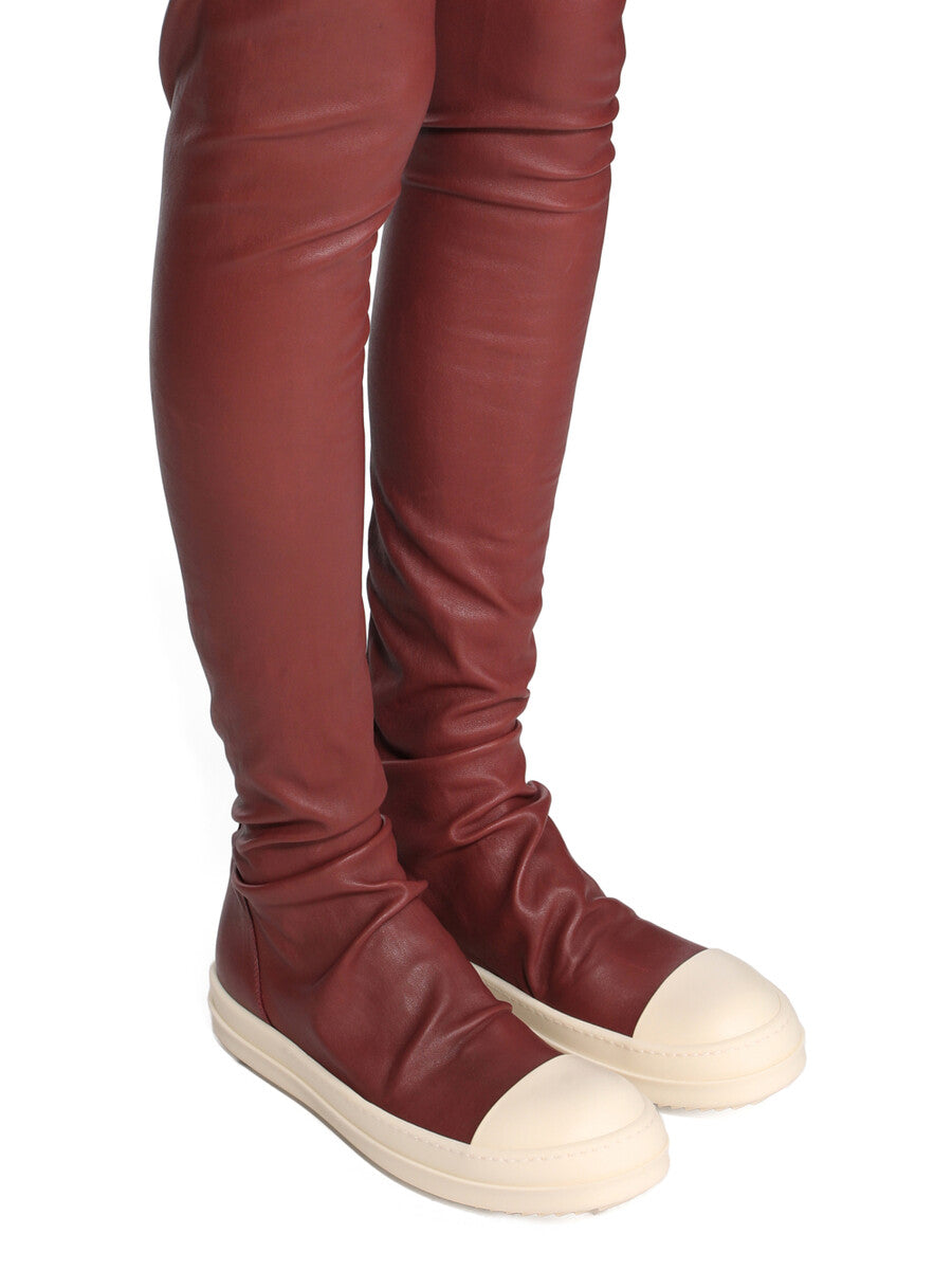 RICK OWENS FW25 CONCORDIANS HIGH STOCKING SNEAKS IN WASHED ROSEWOOD/MILK/MILK STRETCH LAMB LEATHER