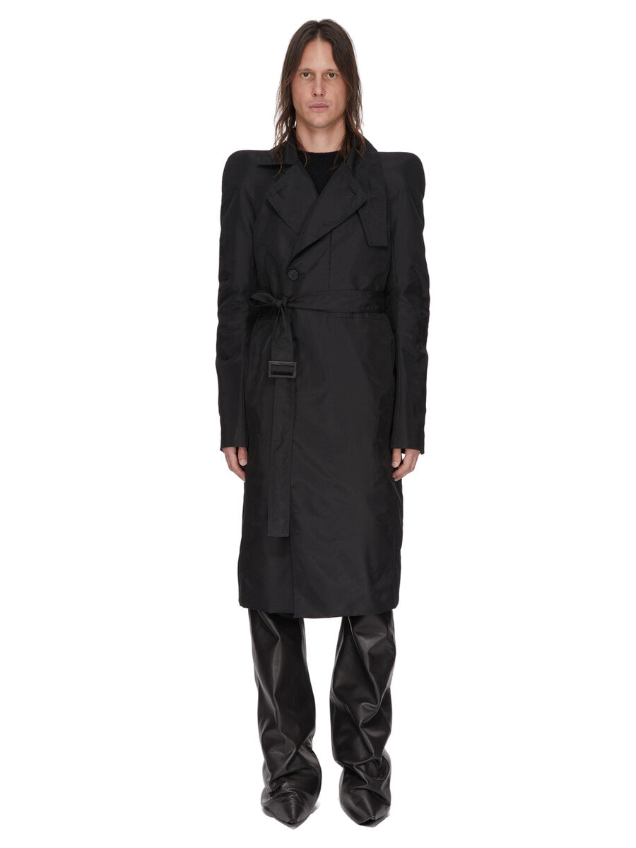 RICK OWENS SS26 TEMPLE TEMPLE TRENCH BLACK NYLON CANVAS
