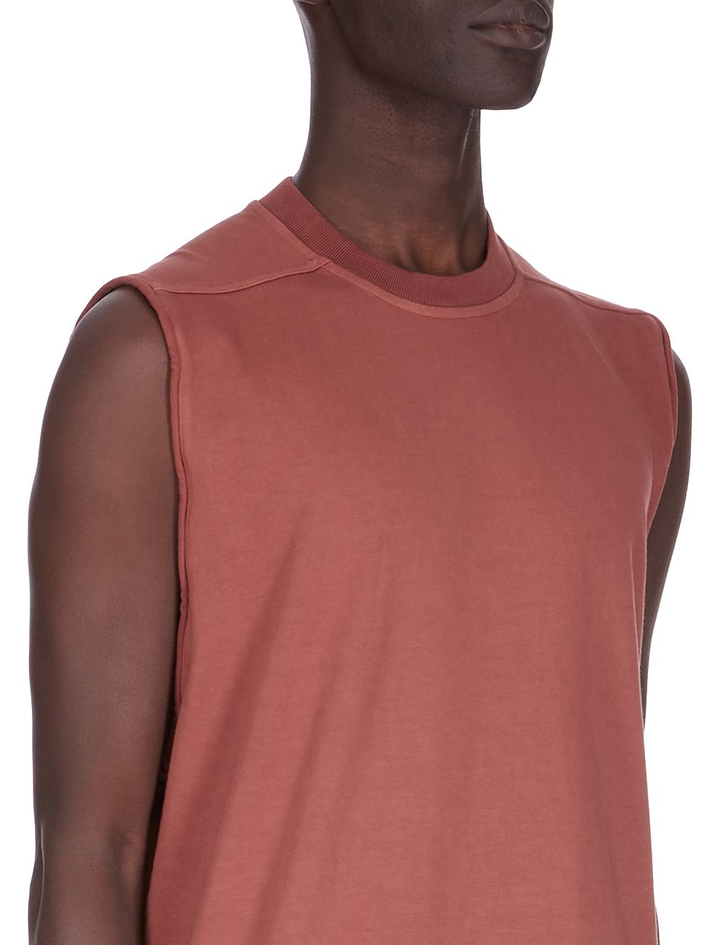THIS JUMBO SL T IS BELOW HIP LENGTH WITH AN OVERSIZED FIT AND SLEEVELESS. IT HAS A RIBBED CREWNECK AND IT FEATURES SIGNATURE FRONT LEVEL SHOULDER SEAMS AND A CENTRE BACK SEAM.