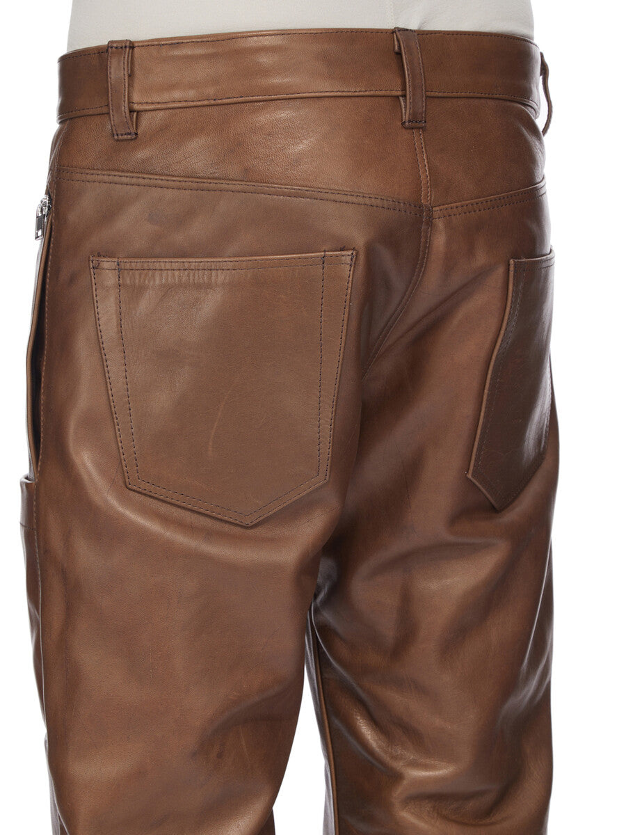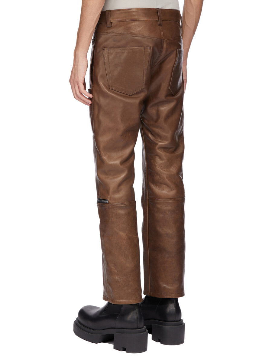 RICK OWENS FW25 CONCORDIANS RUNWAY HEADON JEANS IN BROWN HYBRID HORSE LEATHER