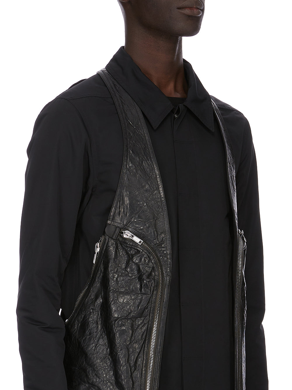 RICK OWENS SS26 TEMPLE BAUHAUS VEST IN BLACK TUMBLED LAMB