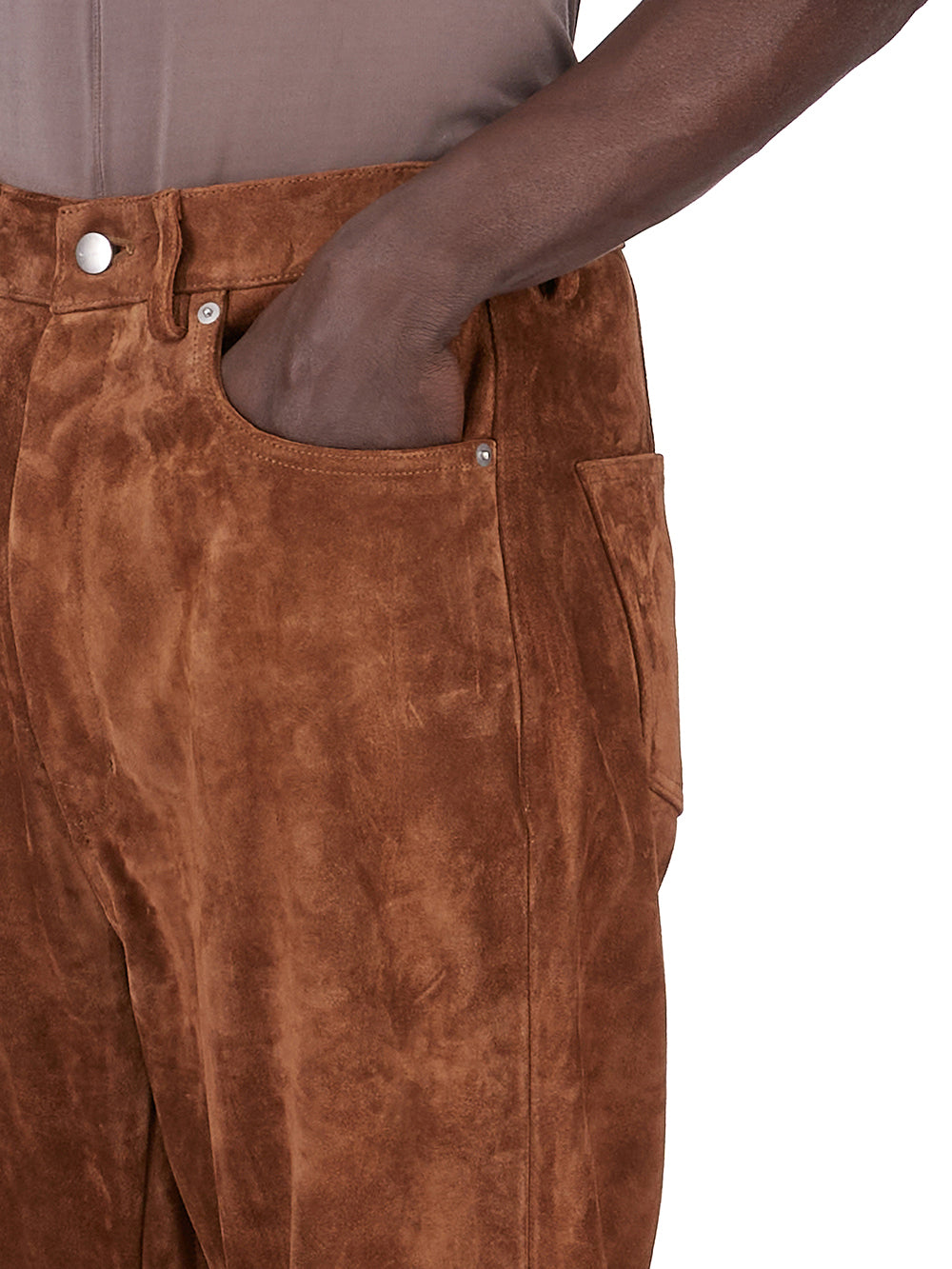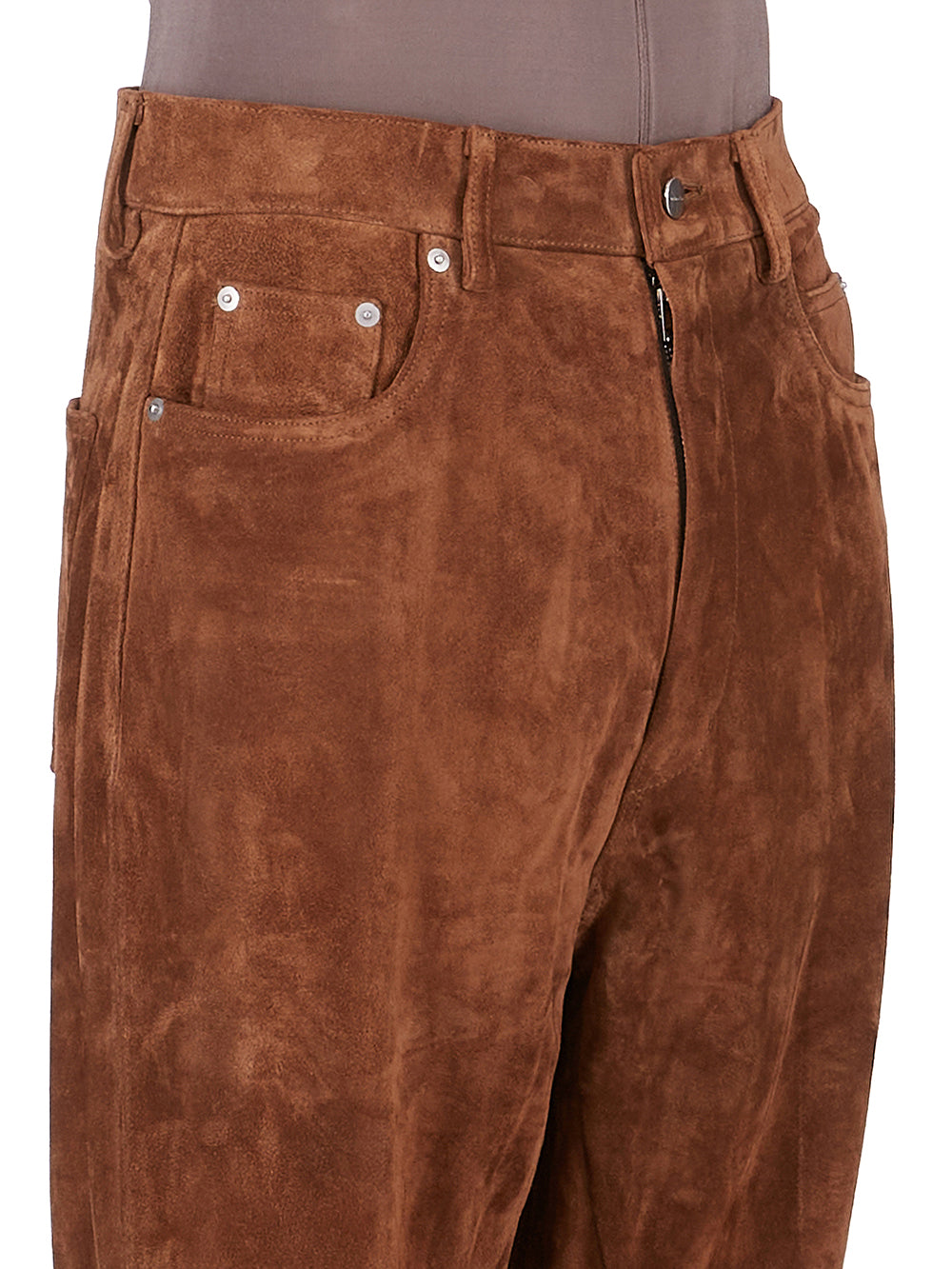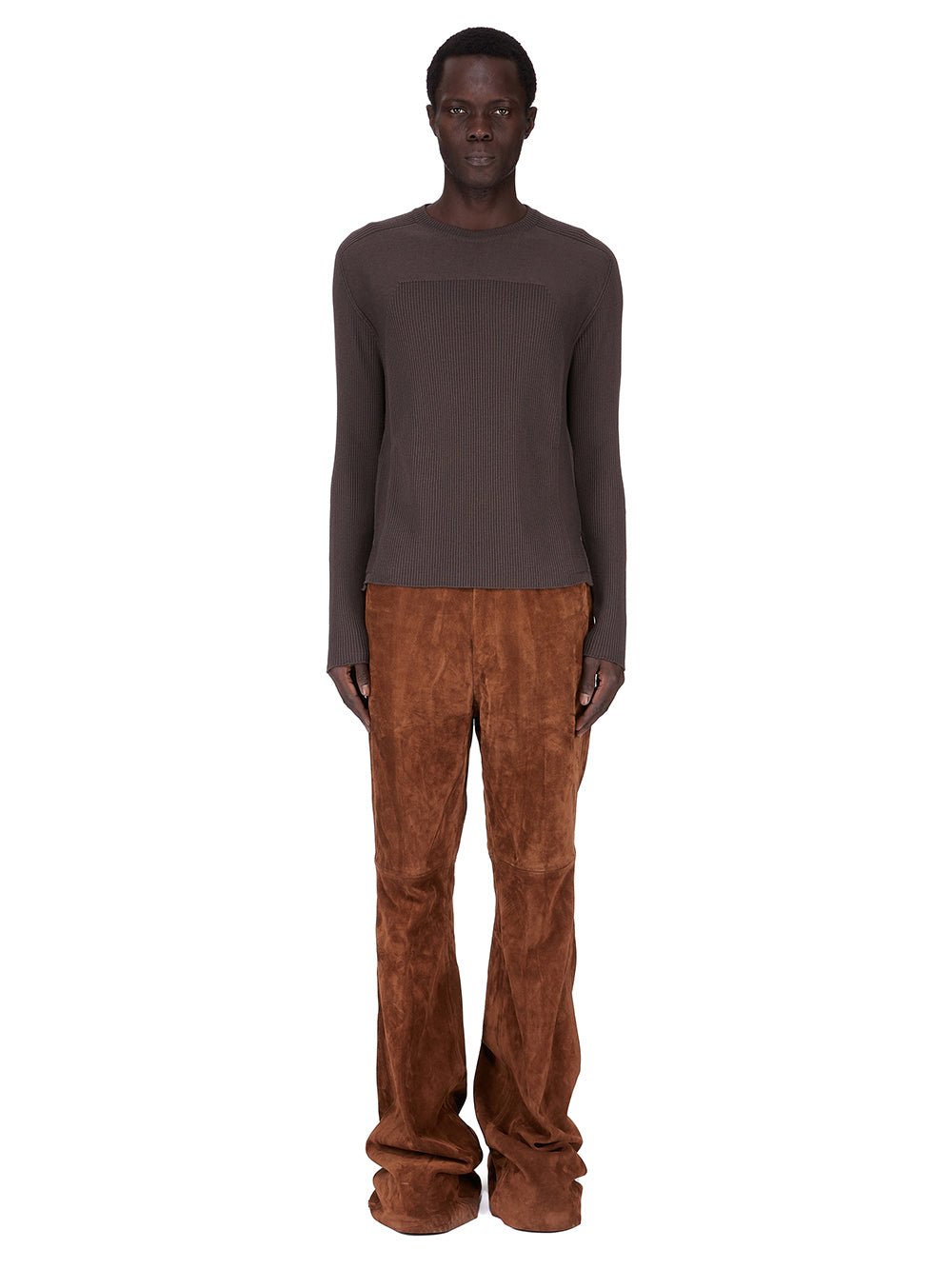 RICK OWENS FW25 CONCORDIANS BOLAN BOOTCUT IN CHESTNUT SUEDE LEATHER.