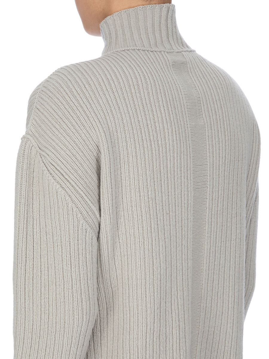 RICK OWENS FW25 CONCORDIANS TURTLE NECK IN PEARL HEAVY WOOL KNIT