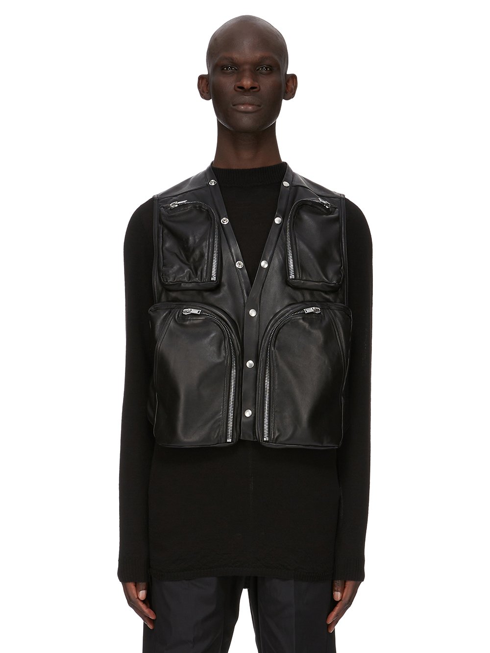 RICK OWENS FW25 CONCORDIANS CARGO VEST IN BLACK WAXY LAMB LEATHER